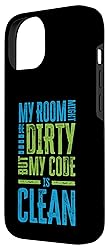 My room is dirty but my code is clean. Perfect design for python programmers, rust coders, mobile developers, and web developers who love working as software engineers. Funny programmer design for programmers who loves to use difficult words to explain their work. Perfect for software engineers, software developers, software programmers, and software team lead. Every programming professional would love this design. Two-part protective case made from a premium scratch-resistant polycarbonate shell and shock absorbent TPU liner protects against drops Printed in the USA Easy installation