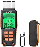 Proster Rechargeable Moisture Meter - Wall Moisture Meter with 5 Modes (Index, Concrete, Cement, Plaster, Wood) & 3-Colour Screen, Pinless Damp Tester with Visual & Sound Alerts Detects up to 40mm