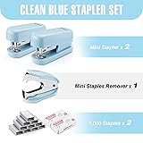 WORKPRO Mini Stapler with Staples, Blue Stapler Set Includes Two Small Staplers, One Staple Remover, 2000 Standard Staples, Lock Design, Non-Slip Base - Staplers for Desk, Classroom, Office
