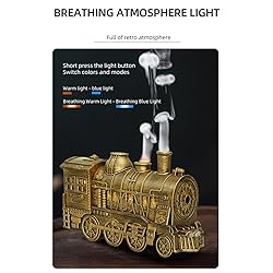 - Christmas Train Diffuser with 270PCS Christmas Train Assembly Toy Building Blocks Set and Remote Control,300ml Vintage Steam Train Aromatherapy Essential Oil Diffuser for Home Bedroom, Train Humidifier, Aromatherapy Diffuser, Train Diffuser for Essential Oil, Steampunk Oil Diffuser, Humidifier Mist Diffuser with Dual-Color LED Light (Standard US Power Supply, Bronze) Specifications: .Made of: ABS Shell, PP Water Cup .Color: Bronze .Name: Steam Train Essential Oil Diffuser .Model: V61 .Functions: Aromatherapy, Humidification, Dual-Color Light (Orange, Blue) .Capacity: 300ml .Timer Settings: 2/8 Hours .Power: 8W .Voltage: (AC 100-220V) or (DC 24V) .Coverage Area: 15-30㎡ .Suitable for: Bedroom, Study, Office, Living Room, etc. .Product Weight: 398g .Package Weight: 600g .Product Dimensions: 24 x 8.3 x 13.8cm .Package Dimensions: 30 x 15 x 15cm .Packing: Box .Ages: 16+ Package Including: .Diffuser *1 .Power Adapter *1 .Manual *1 .Remote Controller(excluding 2*AA batteries) *1