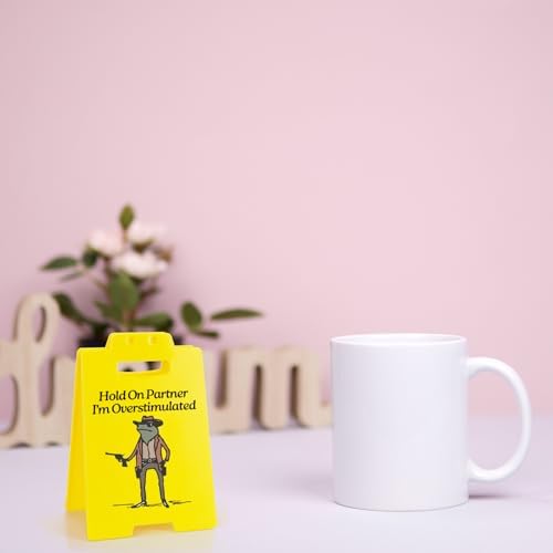 Hold On Partner I'm Overstimulated Humorous Desk Sign - Stress Relief Gifts for Colleagues, Funny Office Decor for Coworkers and Friends