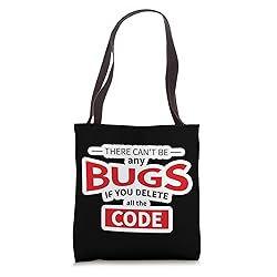 There Can't Be Any Bugs If You Delete The Code T-Shirt. Cool Developer gift to show your interest for Game Development and Coder Joke. Wearable at Computer Quotes. Perfect gift for Men Women & Kids as Computer Quotes and Programmers Joke. Cool Coder Joke T-Shirt. 16” x 16” bag with two 14” long and 1” wide black cotton webbing strap handles. Made of a lightweight, spun polyester canvas-like fabric. All seams and stress points are double-stitched for durability, and the reinforced bottom flattens to fit more items and hold larger objects. Spot clean/dry clean only.