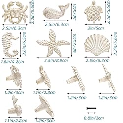 Set of 6 Ocean-Themed Cabinet Knobs: Includes beautifully detailed knobs shaped as a turtle, whale, seahorse, starfish, crab, and scallop, adding a coastal touch to any furniture Durable Cast Iron: Made from high-quality painted cast iron with embossed details and golden highlights. Sturdy and corrosion-resistant, these dresser knobs are built to last for years Versatile Use: Perfect for kitchen cabinets, bathroom vanities, dressers, nightstands, bookshelves, and wardrobes. Ideal for home decor, furniture restoration, or DIY projects Easy Installation: Each kitchen cabinet knob comes with a 20mm screw for quick and easy installation. Simply drill a hole in the desired location, pass the screw through from the back, and thread it into the knob Charming Coastal Design: These nautical-themed knobs for cabinets and drawers bring a beach-house feel to your home, perfect for anyone who loves the ocean or wants to add a unique decorative touch
