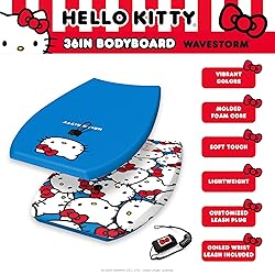 - Introducing a one-of-a-kind collaboration of Hello Kitty and surf-brand Wavestorm. This collaboration features a 36in Bodyboard that features a Soft IXL Graphic deck with U.V. inhibitors over a rigid foam core with a slick channeled bottom. Each board is laminated with ceramic heat - hot air and no harmful dyes, epoxies, or glues used. The bottom is a customized Hello Kitty graphic rigid slick skin with rails bonded up the side for a tight comfortable grip. This board is perfectly sized for Adult or Kids whether at the Ocean, Lake, or Pool.