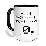 - Celebrate your love for programming with this unique mug! Featuring the witty phrase "Real Programmers count from 0," this mug is perfect for coders, developers, and tech enthusiasts. Made from high-quality ceramic, it's both microwave and dishwasher safe. Ideal for enjoying coffee, tea, or any beverage of your choice while coding. Makes a great gift for your favorite programmer or a fun addition to your own collection."GIVE THE GIFT OF A SMILE EVERY TIME The best gifts are both memorable and practical - qualities that make this accent coffee mug a perfect choice. Thoughtfully designed and crafted in the USA, this ceramic mug is safe for both microwave and dishwasher use, making it as convenient as it is fun. Each mug features a bold, full-color sublimation design on both sides, ensuring that your design remains vibrant even with daily use as your design won't fade over time! With a sturdy C-handle for easy grip and a range of accent colors on the handle and inside, this mug delivers a premium look and feel thatâ€s perfect for both home and office settings.GRAB YOUR UNIQUE ACCENT MUG TODAY AND START SIPPING IN STYLE!"