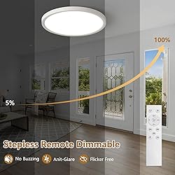 【5%-100% Dimmable with Remote】This ceiling lamp is dimmable form 5% to 100% through the remote, you are able to adjust the brightness easily as you like. 【3000K-6500K Stepless CCT】This kitchen led ceiling light provide 3000K-6500K color temperatures for you to choose by remote, it's convenient and easy for you to set your favorite color temperature any time. 【Energy Saving】The round flat panel light provides 3480LM with a power of only 32W, which is equivalent to a traditional 150W fluorescent lamp, providing great lighting performance while saving a great deal of electricity. It also without flicker or buzzing, offer natural and soft lighting source care for your family. 【Simple Ultra-thin Design】This 20" ceiling light has a thickness of only 0.98 inches, which can saves much space for both low ceilings and tight space environments and it looks clean. Meanwhile, the universal base design makes the LED fixtures compatible with most junction boxes. 【Excellent Lighting Performance】 Our led ceiling light fixtures built-in light filtering technology LEDs as its side light source, while the Nano soft light coverage to provide 360°wide uniform lighting, providing you with a soft, even and non-stinging light , and illuminating a larger area. No flickering, no buzzing. 【Well Sealed & Easy to install】The whole lamp is well sealed, which is prevent dust and flying objects from entering. With IP42 waterproof rating, it provides excellent performance in wet conditions and keeps the interior clean after years of use.We also provide you with matching installation accessories and detailed instructions, making installation easier.