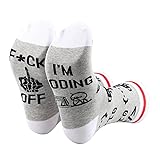 【 QUOTE SOCKS 】With funny quote on the bottom of the socks. A perfect treat for yourself or others you want to gift. 【 COMFY MATERIAL 】Made of 80% Combed Cotton,17% polyester,3% Elastane to ensure our socks soft,comfortable,stretchy and breathable.No Fading,Machine Washable,Hold up well in the laundry. 【CASUAL SOCKS 】Highly elastic,durable and comfortable, heel and toe construction ,comfortable stretch for all day long.Occasions for this crew socks:perfect for everyday weak,sports,boot,hiking,running,flying and travelling and all kinds of athletic activities. 【 NOVELTY SOCKS】 Thoughtful gift to surprise your loved one with. socks for men, women dad, mom, brother, sister, grandpa, grandma, uncle, aunt, best friend, roommate, coworker, boss, husband, wife, girlfriend, boyfriend, cousin, father/mother/brother in laws, him, her and the lists goes on. Add more fun. 【GUARANTEE】If there are any problems with the purchase,please feel free to contact us first.we will offer you best shopping feeling.