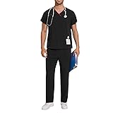 Scrubs for Men Set with Pocket Solid Color Classic Breathable Comfort Medical Nurse Uniforms Set 2 Piece Outfits