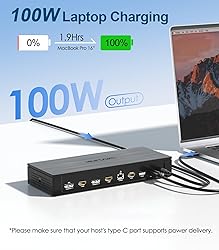 - "WAVLINK Universal Dual 8K / Quintuple 4K DisplayLink Docking Station The WAVLINK WL-UG75PD5-3H2D2 is a DisplayLink-based docking station built on the DL7400 chipset, designed for advanced multi-monitor workstation environments. It enables compatible laptops to expand up to five external displays, making it suitable for professional office productivity, financial trading, programming, data analysis, and enterprise workstation deployments. This docking station is not a Thunderbolt dock and does not provide Thunderbolt functionality. Thunderbolt 3 and Thunderbolt 4 ports are supported only through USB-C backward compatibility. This product prioritizes high monitor count, compatibility transparency, and stable productivity performance, rather than low-latency graphics. Display Architecture and Multi-Display Logic Four external displays are driven by DisplayLink DL7400 technology, which requires installation of the DisplayLink driver. The fifth display output depends on the host laptop’s USB-C port supporting video output (DisplayPort Alt Mode). Connection via USB-A supports DisplayLink display output but does not enable five-display expansion or Power Delivery charging. For full functionality, a USB-C connection with video output capability is required. DisplayLink technology allows more displays than native GPU ports by using software-based graphics processing. This makes it ideal for complex multi-screen workflows where direct display outputs are limited. Display Resolution and Refresh Rate Capabilities Display output capabilities depend on system performance, cable quality, monitor specifications, and display configuration. Single Display: DisplayPort 1: up to 8K@60Hz or 4K@120Hz DisplayPort 2: up to 8K@60Hz or 4K@120Hz HDMI 1 / HDMI 2 / HDMI 3: up to 4K@60Hz Dual Display: Dual DisplayPort: dual 8K@60Hz or dual 4K@120Hz DisplayPort + HDMI combinations: up to 8K@60Hz + 4K@60Hz Dual HDMI: up to 2x 4K@60Hz Triple Display: Various configurations support up to 8K@60Hz + 4K@120Hz + 4K@60Hz Quad Display: Up to 8K@60Hz + 4K@120Hz + 2x 4K@60Hz Quintuple Display: DisplayPort 1 + DisplayPort 2 + HDMI 1 + HDMI 2 + HDMI 3: Up to 4K@120Hz + 4K@120Hz + 3x 4K@60Hz High refresh rates are supported for productivity workflows. This docking station is not recommended for gaming or latency-sensitive applications. Hardware Specifications and Connectivity Model: WL-UG75PD5-3H2D2 Ports: 2 × DisplayPort++ (DSC, up to 8K@60Hz) 3 × HDMI (up to 4K@60Hz) 1 × USB-C host port with up to 100W Power Delivery 3 × USB-A 3.2 Gen 2 (10Gbps) 2 × USB-C 3.2 Gen 2 (10Gbps) 1 × RJ45 Ethernet (2.5Gbps) 1 × 3.5mm audio/microphone combo jack 1 × DC-IN (130W) Power button with LED indicator Supports high-speed data transfer, stable networking, audio input/output, and peripheral expansion for workstation environments. System Requirements and Driver Installation Installation of the DisplayLink driver is required. Drivers are available at displaylink.com → Products → DisplayLink Graphics → Downloads. After installing the driver, restart the system if prompted before connecting displays. The DisplayLink driver is widely used in enterprise environments, digitally signed, and regularly updated to maintain system compatibility and security. After major operating system updates, updating the DisplayLink driver may be necessary. For best performance, a system with 16GB RAM or more is recommended. Insufficient system memory may result in lag, flicker, or delayed screen response when using multiple displays. Operating System Compatibility Supported operating systems include: Windows 10 and Windows 11 macOS 11.x through macOS 15.x or later Chrome OS Ubuntu Android HarmonyOS For macOS, users must grant DisplayLink Manager screen recording permission for external displays to function correctly. This permission is required by macOS security design for software-based display rendering. Not supported: Linux distributions beyond listed versions, Unix systems, iOS, iPadOS, and Steam Deck. Usage Behavior, Limitations, and Troubleshooting If only one or two displays are active, ensure the DisplayLink driver is installed, displays are set to extended mode, and the host USB-C port supports video output. If all displays show the same content, mirror mode may be enabled in system display settings. If DisplayPort outputs do not reach expected refresh rates, verify monitor capability, cable quality, and manual display settings. High refresh rates depend on monitor support and overall system performance. Screen flickering or lag may be caused by insufficient system memory, outdated drivers, or heavy system load. Updating drivers and reducing background workloads typically resolves these issues. Content Protection, Gaming, and Media Use HDCP is not supported. DRM-protected content such as Netflix, Hulu, or iTunes cannot be played on external displays connected through DisplayLink. This docking station is designed for office productivity and professional multi-screen workflows and is not intended for gaming, VR, live video capture, or latency-sensitive applications. DisplayLink vs Thunderbolt Docking Stations Thunderbolt docking stations rely on native GPU output and provide lower latency but are limited by system compatibility and display count. DisplayLink docking stations prioritize higher monitor counts and broader compatibility, making them suitable for advanced workstation setups where multiple displays are required. Why Choose WAVLINK WAVLINK specializes in DisplayLink-based multi-monitor solutions, focusing on compatibility clarity, stable hardware design, and professional technical support. The WL-UG75PD5-3H2D2 is suitable for both individual professionals and enterprise workstation deployments requiring reliable multi-display expansion. Package Contents 1 × DisplayLink docking station 1 × USB-C to USB-C cable 1 × USB-C to USB-A adapter 1 × 130W power adapter 1 × AC power cable 1 × cable holder 1 × quick start guide"