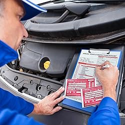 Annual Vehicle Inspection Report Forms 5 Pack with Red FMCSA Labels Aluminum, 3-Ply Carbonless Form Driver Vehicle Inspection Report Book Vehicle Dot Inspection Form and Label Stickers