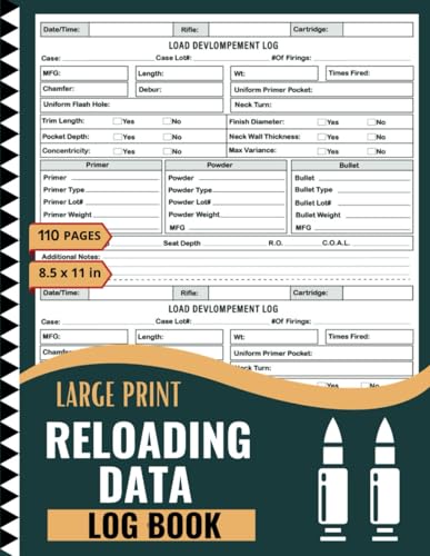 Reloading Data Log Book: Track Bullet Loads, Powder Measurements, and Shooting Results with Ease