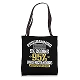 Super theme on the topic programming. Associated keywords are computer, coding and software. Nice grafic for Computer Fans and Internet Nerds with the title: Programming: 5% Coding, 95% Understanding Why It Doesn’t Work. The language of computers consists of 1 and 0, not everyone can tell the PC what to do. It is not easy to program the so called software, for that you have to be almost a nerd. Games or software have programmed databases. 16” x 16” bag with two 14” long and 1” wide black cotton webbing strap handles. Made of a lightweight, spun polyester canvas-like fabric. All seams and stress points are double-stitched for durability, and the reinforced bottom flattens to fit more items and hold larger objects. Spot clean/dry clean only.