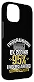 Super theme on the topic programming. Associated keywords are computer, coding and software. Nice grafic for Computer Fans and Internet Nerds with the title: Programming: 5% Coding, 95% Understanding Why It Doesn’t Work. The language of computers consists of 1 and 0, not everyone can tell the PC what to do. It is not easy to program the so called software, for that you have to be almost a nerd. Games or software have programmed databases. Two-part protective case made from a premium scratch-resistant polycarbonate shell and shock absorbent TPU liner protects against drops Printed in the USA Easy installation