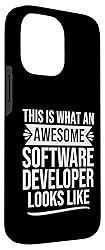 Funny software developer design for software developer men, women and dad in christmas, software developers day, fathers day or birthday. Funny software developer design saying and software developer quote: This Is What An Awesome software developer looks like. Two-part protective case made from a premium scratch-resistant polycarbonate shell and shock absorbent TPU liner protects against drops Printed in the USA Easy installation