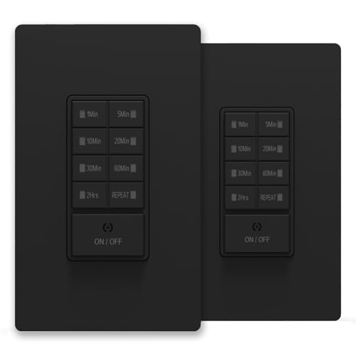 Countdown Wall Timer Switch, Programmable for Exhaust Fan and Lights, 1-5-10-20-30-60mins-2H, in-Wall Bathroom Fan Timer Light Switch, Wall Plate Included, Neutral Wire Required,ETL Listed, Black, 2PK