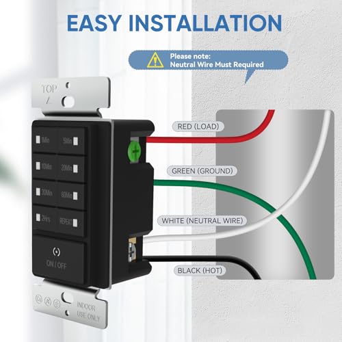 - ✓ Energy Saving: Say goodbye to wasted energy and high electricity bills with our timer light switch. This wall timer switches automate shut-off operations, ensuring lights and fans turn off after the countdown ends, saving you money and energy.