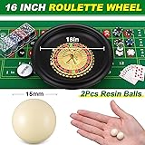 Lunmon Roulette Wheel Game Set Include 16'' Black Roulette Wheel 35" x 16" Rubber Tabletop Layout Mat, 100 Chips Dealer Button Win Marker Casino Game Sets Gift Ideas(Green)