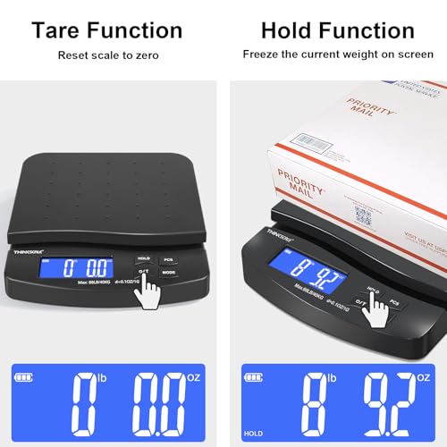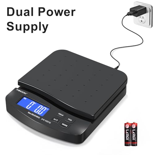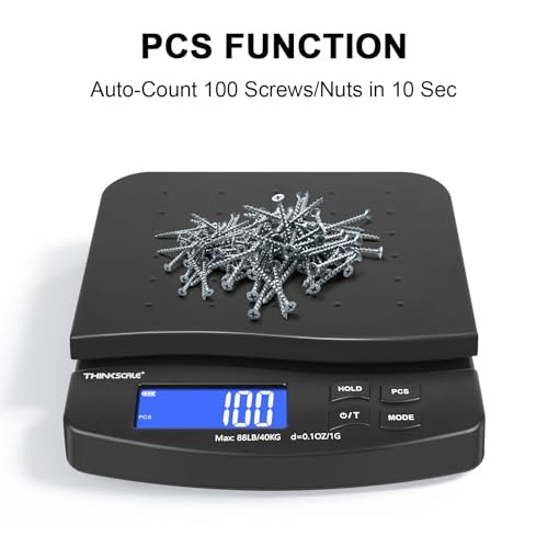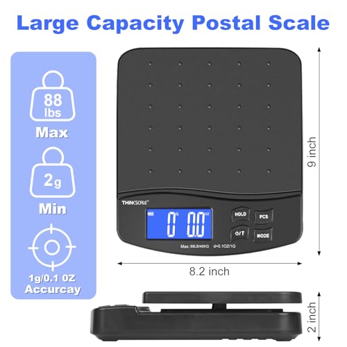 THINKSCALE 88lb Shipping Scale, 0.1oz Precision, Digital Postal Scale with Large LCD, Hold/Tare/Piece Counting, 5 Units, Dual Power (Battery/AC), Black