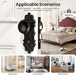 【Classic Design】Our interior door knobs feature exquisite antique black finishing, paired with smooth black door knob.The carvings inspired by Baroque court motifs,every detail tells the story of time 【Easy to Install】The upgraded black door handles fits both left-handed and right-handed doors. Simply remove the screws, flip the latch mechanism, and reinstall the screws. Door knobs interior with lock suitable for door thicknesses 1-3/8"" to 1-3/4"" (35-45mm).Clear, illustrated installation instructions are included 【Privacy Protection】This mortise lock set exterior door suitable for bedroom bathroom door lock door knob interior and other privacy door knobs. Adopting inheritable metalwork, it is retro and exquisite 【Excellent Quality】:Hefty bronze door knobs interior pair with black knobs, the vintage door knobs interior offer perfect usability and are easy to grasp. While technological products are constantly being updated and iterated, classic retro door locks can still ensure durability and rust resistance, and work continuously for several years 【Premium After Sales Support】We stand behind our craftsmanship with responsive After Sales service. For questions or assistance, our specialized support team is ready to assist you