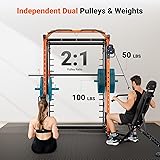 - YOLEO Smith Machine with Independent Dual-Pulley System, 1700LBS Adjustable Cable Crossover Squat Rack, Multi-Functional Power Cage for Home Gym with More Workout Equipment LAT Pulldown Bar & Dip Bar