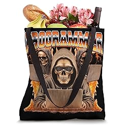 Programmer Coding Programming 90s Skeleton Bootleg Style Graphic Design for Programming Lovers Programmer. For people thinking of Programmer Programming 90s Retro Bootleg Gift Ideas 16” x 16” bag with two 14” long and 1” wide black cotton webbing strap handles. Made of a lightweight, spun polyester canvas-like fabric. All seams and stress points are double-stitched for durability, and the reinforced bottom flattens to fit more items and hold larger objects. Spot clean/dry clean only.