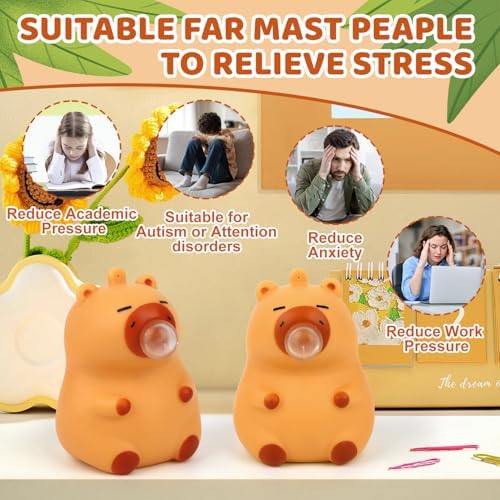 4pcs Capybara Spit Bubbles Stress Relief Toy, Bubble Squeeze Toys, Squishy Fidget Toys for Birthday, Christmas, Office Gift(2.5x3.7inch)