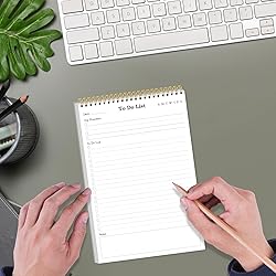 ORGANIZE TASKS EASILY AND EFFECTIVELY - This To-Do List Notepad, a must-have office tool, our notepad offers multiple sections with ample space to write all your important tasks. Perfect for daily task management, helping you prioritize and manage office supplies effectively. 5-PACK - Our to do list planner is size of 5.5" x 8.3", with 50 sheets/100 pages per pack, total in 250 sheets/500 pages for 500 days, improve your productivity with this daily organizer. MINIMALIST DESIGN TO BOOST PRODUCTIVITY - Experience the perfect balance of minimalist and functional design with our daily to-do list notepad. Our Daily Checklist Notepad is the ultimate tool to streamline your daily planning and elevate your productivity. HIGH QUALITY - Daily planner notepad is undated, used to high quality 100gsm pure white premium acid-free paper, so you can confidently use most pens, pencils, and markers without ghosting and bleed-through.The waterproof PVC front cover provides good protection for this daily notepad, while the hard back base can give you a better writing experience, and the twin-wire bingding design makes it so it won't leave traces when you tear off the completed plan pages PERFECT FOR - This to do list pad for work,home, school notes, meeting notes, or any form of writing, or also simply to list things you want to do. this office desk accessory is also a practical addition to school supplies. Suitable for students, professionals, and homemakers alike, it helps keep tasks and priorities in check effortlessly.