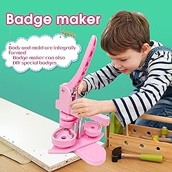 - Features: Great gift: The badge maker can be a great gift for your kids, loved ones or friends as a gift. Badge making machine can also DIY special badges, especially suitable for personalized commemorative gifts for tourist attractions, various conferences, advertising promotions, schools, communities, enterprises, families, etc. DIY pin button badge making kit includes: 1 button making machine, 100 button parts, 1 heart-shaped cutter and 2*screw wrenches. Specifications: Material: ABS plastic + stainless steelColor: Green Style: RotaryProduct size: 36.5*23.5cm/14.37*9.25"Packing weight: 3500gPackage size: 45*25*9.5cm/17.72*9.84*3.74" How to use: Step 1: Use the template to cut the picture into a heart shape;Step 2: Place the mold at the bottom and top of the badge on the button machine;Step 3: Put the badge metal cover into the top cover mold and place the picture on the cover;Step 4: Place the transparent film on the picture and press the handle of the badge making machine;Step 5: Add metal pin backing to the bottom cover mold and press the badge making machine handle. Notes:Due to the different monitor and light effect, the actual color of the item might be slightly different from the color showed on the pictures. Please allow 1-3cm measuring deviation due to manual measurement. Thank you for your understanding! Packing List: Badge machine*1Button mold*1Button parts*100 (iron cover+plastic base+blank paper+plastic film)Cutting template*1Screwdriver tool*2Manual*1