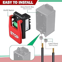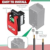 [Standard Specifications]: Dual Voltage: 120V/230V; Single Phase Rated Current: 2HP/35 Amps at 120V; 3HP/20 Amps at 230V, comes with screws for Gang Box Installation [Improved Safety]: This circuit breaker panel safety switch allows you to keep your hands on your workpiece at all times. In situations where you need to quickly shut off power, searching for a switch under your router table or contractor table saw can be risky, Provides you with a mains or emergency power off safety switch box. With this safety switch, You can easily and quickly turn off the main or emergency power with your knee, thigh or hip, ensuring a safer and more convenient operation [Easy to Locate]: The large red STOP paddle is designed for quick emergency stops, offering full contact with the STOP button to prevent missed shutdowns. The recessed green START button prevents accidental activation, making this safety switch an ideal tool for safer and more efficient work [High Quality Materials]: The large paddle is crafted from durable ABS fireproof material, ensuring a long service life. The OFF paddle is securely fixed with locking screws, providing added safety and reliability [Wide Applications]: Replaces old or damaged router table switches and works with a wide range of popular name brand table saws, drill presses, belt sanders, jointer, dust collectors and other power tools with reliable stops in both the on and off position