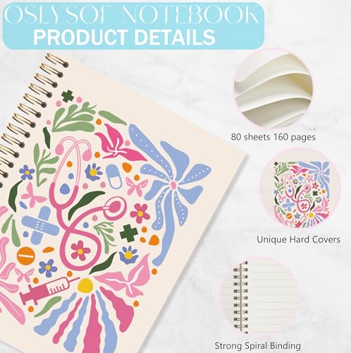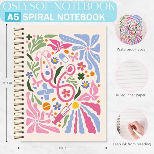 OSLYSOF Nurse Spiral Notebook, Nurse Appreciation Gifts Notebook, Nurses Week Day Notebooks for Note Taking, Groovy Boho Floral Nursing Journal, 5.5x8.3 Inch with 164 Pages