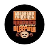 Weekend Forecast Robotics With A Chance Of Sleeping This merchandise design with a funny robotics phrase is made for someone who loves building robots and engineering. Perfect present for anyone who loves to drink. Adhesive backing attaches the PopGrip to your case or device. Will not stick to silicone, leather, waterproof, or highly textured cases. Works best with smooth, hard, plastic cases. Not compatible with wireless charging Printed top is swappable with other compatible PopGrip models. Just press flat, turn 90 degrees until you hear a click and remove to swap.