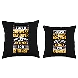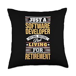 Funny saying novelty design gift for a Software Developer. Just a Software Developer Dying Inside But Living for Retirement. 100% spun-polyester fabric Double-sided print Filled with 100% polyester and sewn closed Individually cut and sewn by hand Spot clean/dry clean only