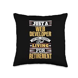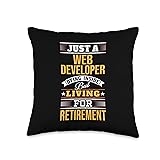 Funny saying novelty design gift for a Web Developer. Just a Web Developer Dying Inside But Living for Retirement. 100% spun-polyester fabric Double-sided print Filled with 100% polyester and sewn closed Individually cut and sewn by hand Spot clean/dry clean only