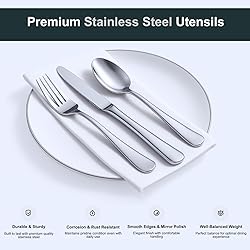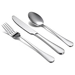 Crafted for Lasting Meals: Premium stainless steel cutlery set built to withstand decades of dishwasher use, rust, and corrosion – your enduring tableware for cozy dinners to lakeside cookouts Engineered Comfort in Your Hand: 3-piece silverware set in 3 Sizes (8.3", 8.9", 7.3") sculpted with weight-balanced handles and satin-smooth edges – where modern design molds to your hand like a trusted kitchen companion Versatile 3-Piece Flatware Set: From campfire chili to candlelit steak nights: rustproof, scratch-resistant flatware set survives adventures while polishing to mirror shine after every wash Mirror-Polished Table Upgrade: Stainless steel utensils set that outshines ordinary utensils – non-tarnishing blades meet Art Deco curves, transforming takeout nights into Instagram-worthy place settings Elegance Pre-Packed for Gifting: Ready-to-gift silverware set in luxe recyclable box – dishwasher-safe durability meets museum-worthy styling for newlyweds or first-apartment dreamers