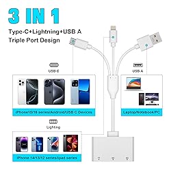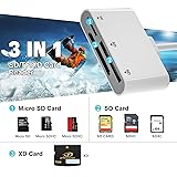 - 3 in 1 Lightning+USB A+USB C XD/SD/TF Card ReaderThis 3-in-1 Lightning/USB-C/USB-A xd memory card adapter with dedicated XD/SD/TF slots delivers universal compatibility for SD/SDHC/SDXC/microSD/XD cards.Instantly transfer photos and videos between iPhones, iPads, MacBooks, Windows PCs, Android devices, and cameras (DSLRs, GoPros, drones & dashcams). No software needed – just plug and play!Seamlessly access RAW and JPEG photos, H.265 and MPEG 4 videos, and large project files across all ports while maintaining exFAT cross-platform support (Mac/PC), perfect for photographers, video editors, and multi-device users demanding single-tool versatility without driver installations.TRIPLE CARD SLOTSAccess RAW/JPEG photos, 4K videos (H.265/MP4), and large files directly from SD + MicroSD + XD cards – no swapping adapters!UNIVERSAL COMPATIBILITYEngineered for seamless connectivity, this 3-port card reader (Lightning/USB-C/USB-A) delivers plug-and-play compatibility with MacOS/iOS/Android/Linux/ChromeOS/Windows XP/Vista/7/8/8.1/10,11,etc.This card reader has three connectors supporting direct file transfers between iPhone 16/15 series (USB-C), iPhones/iPads (Lightning), Android tablets, Windows PCs, MacBooks.Important Notes:Ensure USB-C/Android devices support OTG functionality (enable via [Settings > Other Settings > OTG Connection])This XD card reader is equipped with SD/TF/XD card slots. This XD/SD/TF card reader operates in single-slot mode (Only insert 1 card at a time)If the card is not recognized, please check if the card is formatted in a supported format, such as exFAT. (NTFS not supported)iOS Compatibility:For iOS versions 9.2 to 12.4: Only photo and video transfers from the camera to the Phone or iPad are supported. For iOS 13 and later: Bidirectional transfer and file transfer are supported. Data exchange between systems with USB ports (Windows, Android, iOS) is possible.