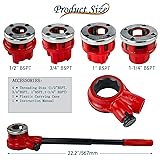 YuYBrightmi BSPT Pipe Threader Ratchet Kit, Manual Pipe Threading Tool Set with 4Dies (4 Dies-1/2" 3/4" 1" 1-1/4") Heavy Duty Ratcheting Threader for Professional Pipe Cutting and Threading
