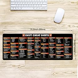 Extra Large & Comfortable: Measuring 31.5 x 11.8 inches with a 3mm thickness, this XL mouse pad offers ample space for your mouse, keyboard, and more - ensuring comfort and reducing noise. Smooth & Precise Control: Enjoy effortless mouse movement with the ultra-smooth surface, perfect for both gaming and office work. Non-Slip Rubber Base: The anti-slip rubber base keeps the pad securely in place during intense gaming or work sessions. Durable & Stylish Design: Invisible stitching prevents edge wear while maintaining a sleek look, extending the pad’s lifespan. Waterproof & Easy to Clean: The water-resistant coating allows for quick cleaning—spills and stains wipe away easily. Swift Programming at Your Fingertips – Instantly access key Swift syntax, commands, and code examples without searching online. Accelerate Coding Productivity – Reduce debugging time and speed up development with quick, visual references. Perfect for Developers & Students – Ideal for Swift learners, iOS app developers, and coding enthusiasts.