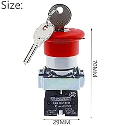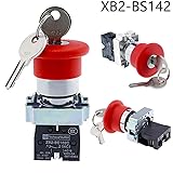 VELORE XB2-BS142 Key Emergency Stop Rotary Push Button Switch 2 Position Locking 22mm 1NC 2NC 1NO/1NC Mushroom Head Button(2NC)