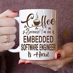 [Humorous Gift for Embedded Software Engineer Professionals]: This 11oz white ceramic mug features the funny quote: Coffee, Because! I'm an Embedded Software Engineer Is Hard, perfect for Embedded Software Engineer who rely on coffee to power through their challenging days. [Durable Ceramic Design]: Crafted from premium white ceramic, this 11oz mug is microwave-safe and dishwasher-safe, perfect for daily coffee or tea in any workplace. [Comfortable Size For Workdays]: With an 11oz capacity, this mug fits seamlessly in an office or home setting, designed with a sturdy handle for Embedded Software Engineer enthusiasts. [Perfect Gift for Any Occasion]: Surprise your favorite Embedded Software Engineer with this personalized mug on birthdays, holidays, or as a thoughtful appreciation gift. It’s a great way to celebrate their hard work and dedication! [Ideal Size for Coffee Lovers]: With an 11oz capacity, this mug is the perfect size for coffee, tea, or any beverage, making it for any Embedded Software Engineer needing a caffeine boost during their busy schedule.