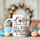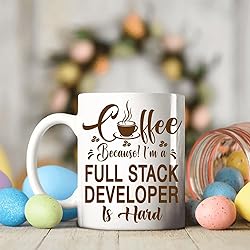 [Humorous Gift for Full Stack Developer Professionals]: This 11oz white ceramic mug features the funny quote: Coffee, Because! I'm a Full Stack Developer Is Hard, perfect for Full Stack Developer who rely on coffee to power through their challenging days. [Durable Ceramic Design]: Crafted from premium white ceramic, this 11oz mug is microwave-safe and dishwasher-safe, perfect for daily coffee or tea in any workplace. [Comfortable Size For Workdays]: With an 11oz capacity, this mug fits seamlessly in an office or home setting, designed with a sturdy handle for Full Stack Developer enthusiasts. [Perfect Gift for Any Occasion]: Surprise your favorite Full Stack Developer with this personalized mug on birthdays, holidays, or as a thoughtful appreciation gift. It’s a great way to celebrate their hard work and dedication! [Ideal Size for Coffee Lovers]: With an 11oz capacity, this mug is the perfect size for coffee, tea, or any beverage, making it for any Full Stack Developer needing a caffeine boost during their busy schedule.