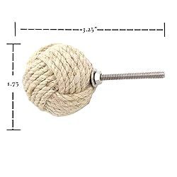 UNCOMMON GIFT CHOICE: These artisanal jute knobs serve as a unique gift for friends and family on numerous events such as birthdays, anniversaries, engagements, weddings, retirement celebrations, 1.75" housewarming events, Christmas, Thanksgiving, Easter, New Year, and more. HIGH-END QUALITY ITEM: These jute rope drawer handles are meticulously crafted by skilled artisans using top-grade, non-scratchy natural jute, with loops tied in an elegant criss-cross design, suitable for various kitchen cabinets, bedroom wardrobes, cupboards, bathroom drawers, and other furnishings, enriching your home's interior decor. SIMPLE SETUP: These knobs are very simple to set up. The package contains all the hardware needed for installation. It simply needs a hand drill. Knobs are equipped with screws and washers. The screw is finished in brushed nickel and is resistant to rust. These components enable easy upkeep. UNIQUE DESIGN: Nautical style knot door knobs are unique decorative fixtures for your ocean-themed summer residence, seaside abode, entryway, nautical bathrooms, coastal cottage, beachfront properties, beach-inspired decor, a maritime themed gathering, etc. They provide an elegant atmosphere to your environment. DIMENSION: The dimensions of these charming vintage knobs fit seamlessly with any room or furniture size. Its measurements are 3.25 x 1.75 x 1.75 inches. This furniture handle made of jute rope is tightly woven, which ensures its strength and durability, prevents deformation, and allows it to last for many years.