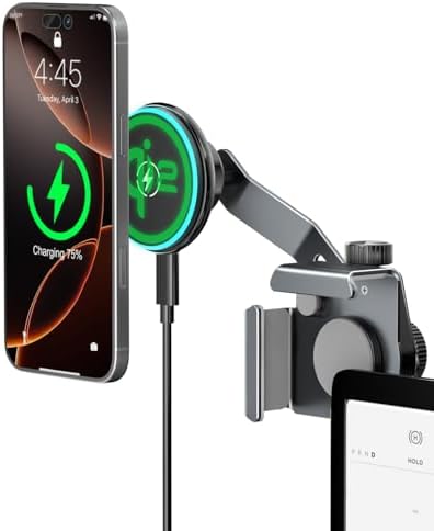 CloudValley Qi2 15W Wireless Charger Phone Mount for Tesla Model Y/3,【Extendable Metal Holder】 Compatible with iPhone MagSafe, Magnetic Adjustable Car Holder for Tesla Model 3 Highland/Y Juniper