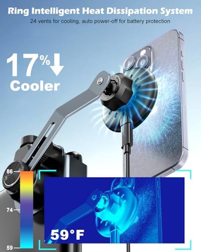 - 【Faster Qi2 Charging & Heat Control】Enjoy ultra-fast 15W Qi2 wireless charging—up to 3× faster than standard chargers. The advanced heat dissipation system features a ring design with 24 vents to maintain optimal temperature and automatically stops at 100% to protect phone battery health. Important:Must ensure the single port's output of your car charger is higher than 20W