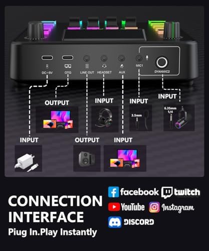 - 【Exceptional Compatibility】The sound board has a clear interface that is widely compatible with phones, computers and tablets. It supports up to 3 microphone audio inputs (mic 1, mic 2, mic of headset),Compatible with dynamic microphones,allowing 3 people to stream, record or game simultaneously. Whether you're on OBS, Discord, Twitch, TikTok, YouTube, Facebook, Spotify or Zoom, you'll be able to create audio without hassle and enjoy a smooth recording experience.Note: Incompatible with XBOX