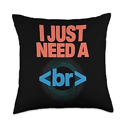 Great software engineer gifts for coders, web developers, a programmer and tech lovers who love humorous HTML and CSS jokes. Features the html break tag and pun text for any software engineer or front-end programming enthusiast 100% spun-polyester fabric Double-sided print Filled with 100% polyester and sewn closed Individually cut and sewn by hand Spot clean/dry clean only