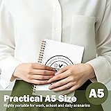 Compact and Portable: Measures approximately 5.5 x 8.3 inches, offering a balanced writing area while remaining light and easy to carry. Fits well in backpacks, handbags, or laptop sleeves, making it convenient for everyday use whether at home, classroom, or on the go. Sturdy Outer Covers: Features hard front and back covers that help protect the inner pages from bending or wear. The firm surface also makes it easier to write when a desk isn’t available, supporting quick notes or sketches anytime. Gift-Friendly Option: A practical and thoughtful item for learners, professionals, or anyone who enjoys writing. Makes a suitable addition to study supplies, office materials, or care packages for coworkers, or friends. Adaptable for Daily Use: Useful for a range of purposes, from organizing schedules and writing class notes to keeping journals or tracking personal goals. Flexible Spiral Binding: The twin-loop spiral lets the notebook open fully and fold back without damaging the spine. This design allows comfortable writing on both sides of each page and provides a flat surface for more stable use.