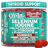 ThyroGlow Thyroid Support Gummies Selenium Iodine KSM 66 Ashwagandha L Tyrosine Vitamin D, C, B12, B6 Turmeric Blueberry Holy Basil Folate Bladderwrack by Clean Nutra