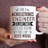 - Whether you're a Microelectronics Engineer tackling challenges or just surviving Monday meetings, this mug understands you. The: I Am a Microelectronics Engineer To Save Time Let's Just Assume That I Am Never Wrong. Design brings a smile with every sip. It's the ultimate companion for busy professionals who rely on a good cup of coffee to get through the day.This high-quality 11oz white ceramic mug is microwave and dishwasher safe, making it as practical as it is entertaining. Whether you're treating yourself, thanking a coworker, or surprising a friend, this mug makes a perfect gift for birthdays, office events, or appreciation days.Makes a great gift for birthdays, holidays, or a little pick-me-up for yourself or a coworker!Your satisfaction matters – If there’s any issue with your order, we’re here to help.