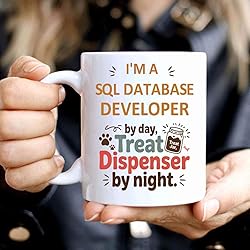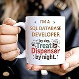 Gift Design Idea Funny Gift for a Sql Database Developer, Pet Lovers, I'm a Sql Database Developer By Day, Treat Dispenser By Night 11 Oz White Ceramic Coffee Mug