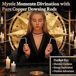 【High-Purity Copper for Precise Energy Detection】:Crafted from 99.9% pure copper, our copper dowsing rods deliver 40% greater sensitivity than brass alloys, capturing subtle energy shifts with unmatched precision. The 99.9% copper rods’ high-density with L-shaped design minimizes shake, ensuring steady handling for ghost hunting or spiritual exploration 【5-Ring Pendulum Board for Precise Spiritual Divining】:Our dowsing rods copper spiritual kit includes a five-ring pendulum board with 12 zodiac signs, 26 letters, 12 months, Yes/No, and pentagram zones. Hover the pendulum over the center, focus on your question, track the symbol it points to, blending Eastern and Western mysticism for precise paranormal equipment answers 【Ergonomic Handles with Anti-Oxidation for Lasting Sensitivity】:5.5-inch ergonomic handles fit 95% of hand sizes, ensuring comfort for long dowsing rods copper spiritual sessions. An anti-oxidation coating delays tarnish. Store in the felt pouch for anti-magnetic, moisture-resistant protection, keeping the witching sticks glossy and sensitive for every use 【All-in-One Paranormal Kit, Perfect for Gifting】:This multi-function ghost hunting equipment kit includes two L-shaped dowsing rods, a pendulum, a five-ring wooden board, and a felt pouch. The quick-start guide manual helps beginners calibrate in 3 minutes, effortlessly starting spirit tracking, energy detection, or paranormal investigations. A thoughtful gift for divination enthusiasts 【Dual-Certified for Water Locating and Spiritual Use】:Our professional divination tools feature ultra-sensitive energy sensing capability, penetrating ground interference to precisely locate water, mineral or hidden objects. For best results: hold steadily, move slowly, and observe the signal targets. Bridging practical detection with energy work, they excellently serve both field explorers and spiritual practitioners
